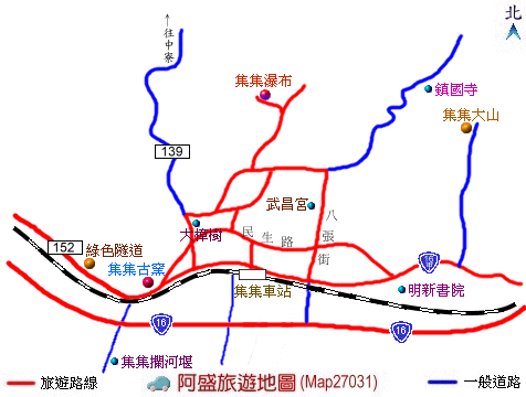 如集集、綠色隧道、蛇窯、日月潭等